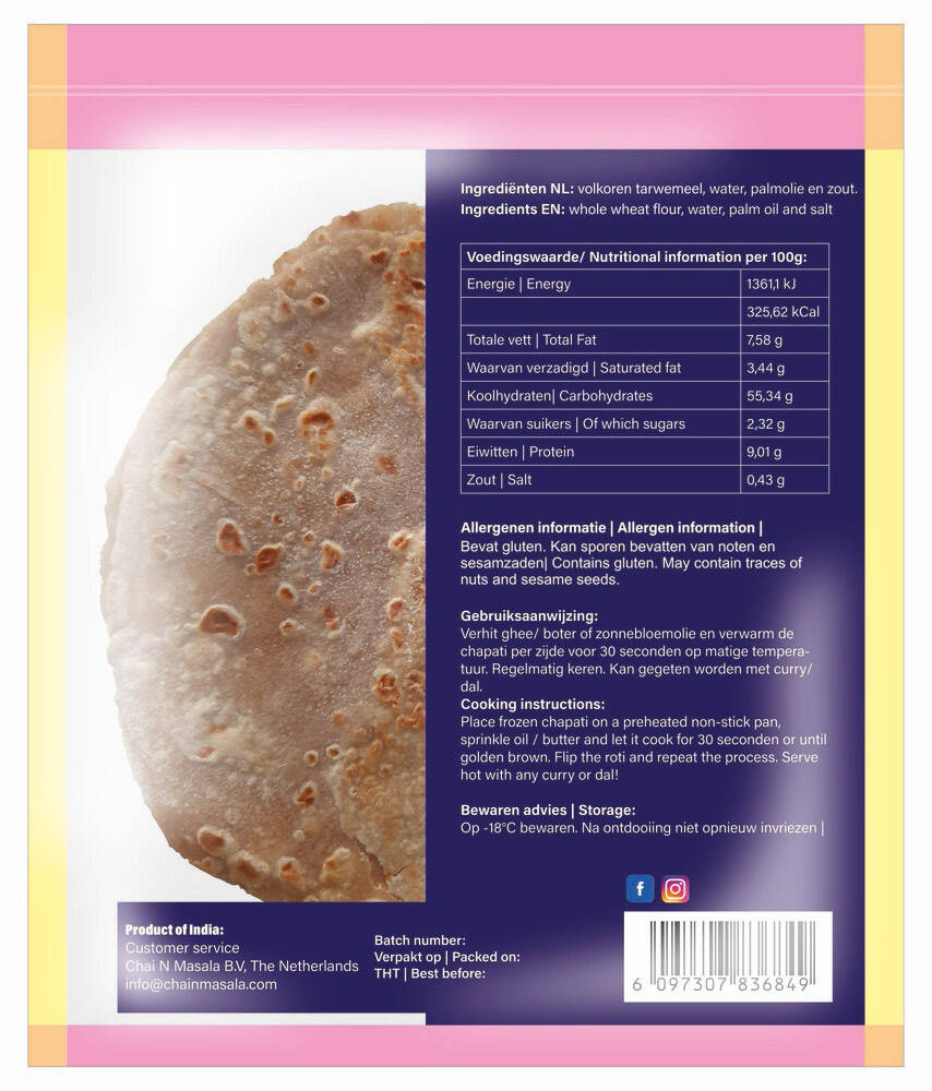 Indian whole wheat layered roti.
